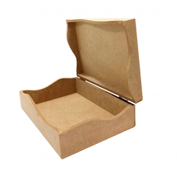 Informações do produto: Caixa Retangular 23x16 Ondulada Tampa Dobradiça MDF Cru