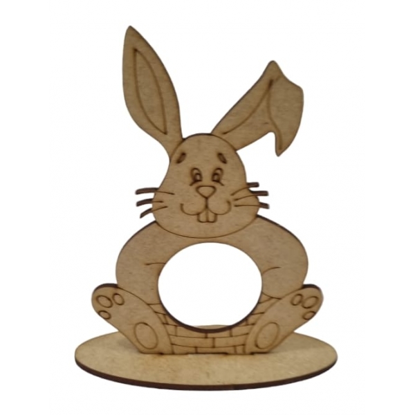 - Recortado a laser no formato de coelho, apioado em uma base, com abertura para encaixar 1 bombom