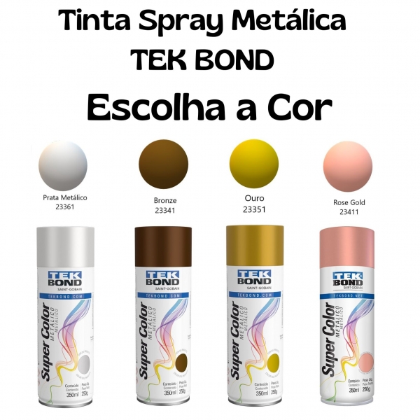Tinta Spray TekBond Metálica Super Color 350ml Artesanato Tela Madeira - Escolha a cor desejada